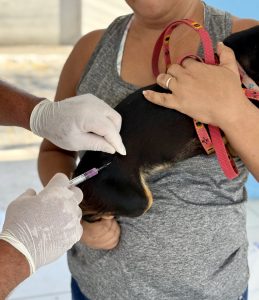 Na Zona Rural, a equipe da Vigilância em Saúde está realizando a busca ativa, garantindo que nenhum pet fique sem proteção.