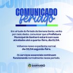 A Prefeitura de Sanharó decreta feriado e ponto facultativo nos órgãos e entidades da administração municipal nos seguintes dias: